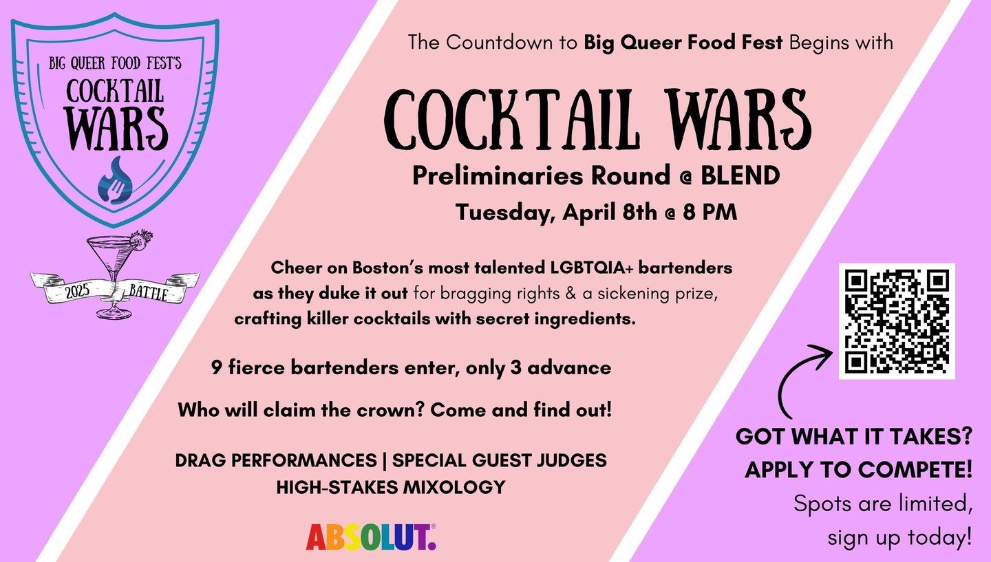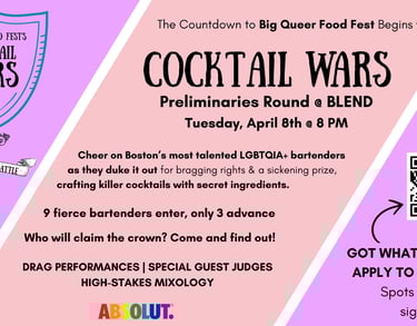 Boston’s fiercest queer bartenders are stepping behind the bar and into the ring. In two high-stakes nights of shake-offs and showdowns, nine competitors will battle it out at each event — but only three from each round will advance to the grand finale. Expect bold pours, surprise ingredients, and the kind of energy that only a queer cocktail throwdown can deliver. Bring your crew, cheer your favorites, and witness the rise of Boston’s next cocktail legends. Proudly sponsored by Absolut.