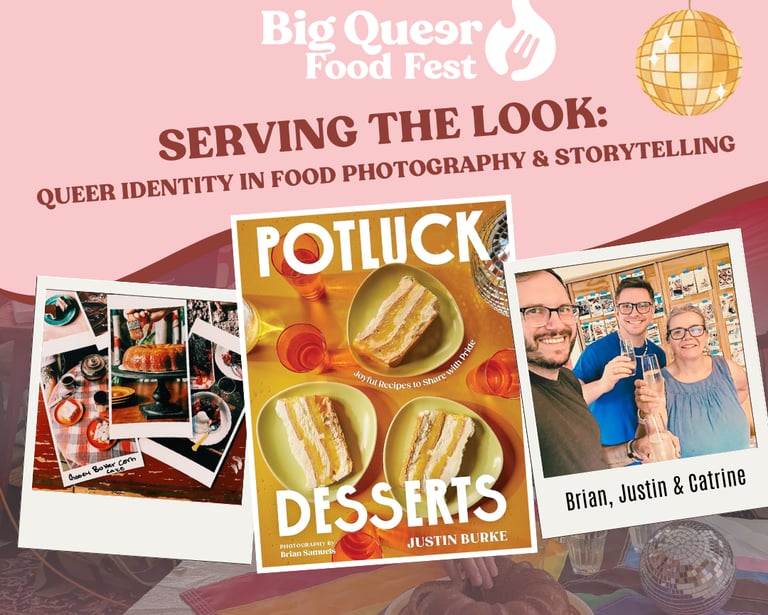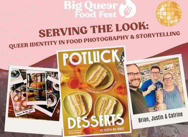 There’s no manual for capturing queer identity in food photography—but the team behind Potluck Desserts found their own way. Join author Justin Burke, photographer Brian Samuels, and stylist Catrine Kelty for a lively conversation on crafting visuals that go beyond “just pretty” to tell rich, personal stories. Expect behind-the-scenes insights, creative sparks, and plenty of delicious details.