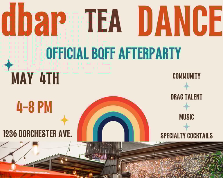 We’re closing out the weekend with one last turn-up: drag, DJs, specialty cocktails, and a whole lot of queer joy. Come mix, mingle, and dance with us on the patio from 4–8PM at 1236 Dorchester Ave. Free to attend, but absolutely not to be missed.